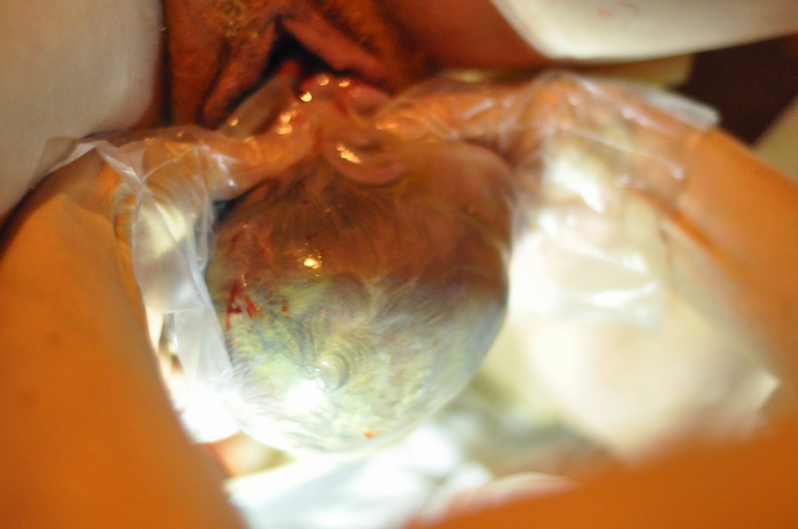 Olhei pra baixo. Aquela aguinha saindo. Sim, a bolsa não tinha estourado, nasceu empelicado. Chorei. Chorei muito quando vi ele ali, ao alcance das minhas mãos, aquele chorinho e um corpo perfeito. Ele estava ali, bem na minha frente e veio pra mim. Saiu de mim, voltou pra mim.